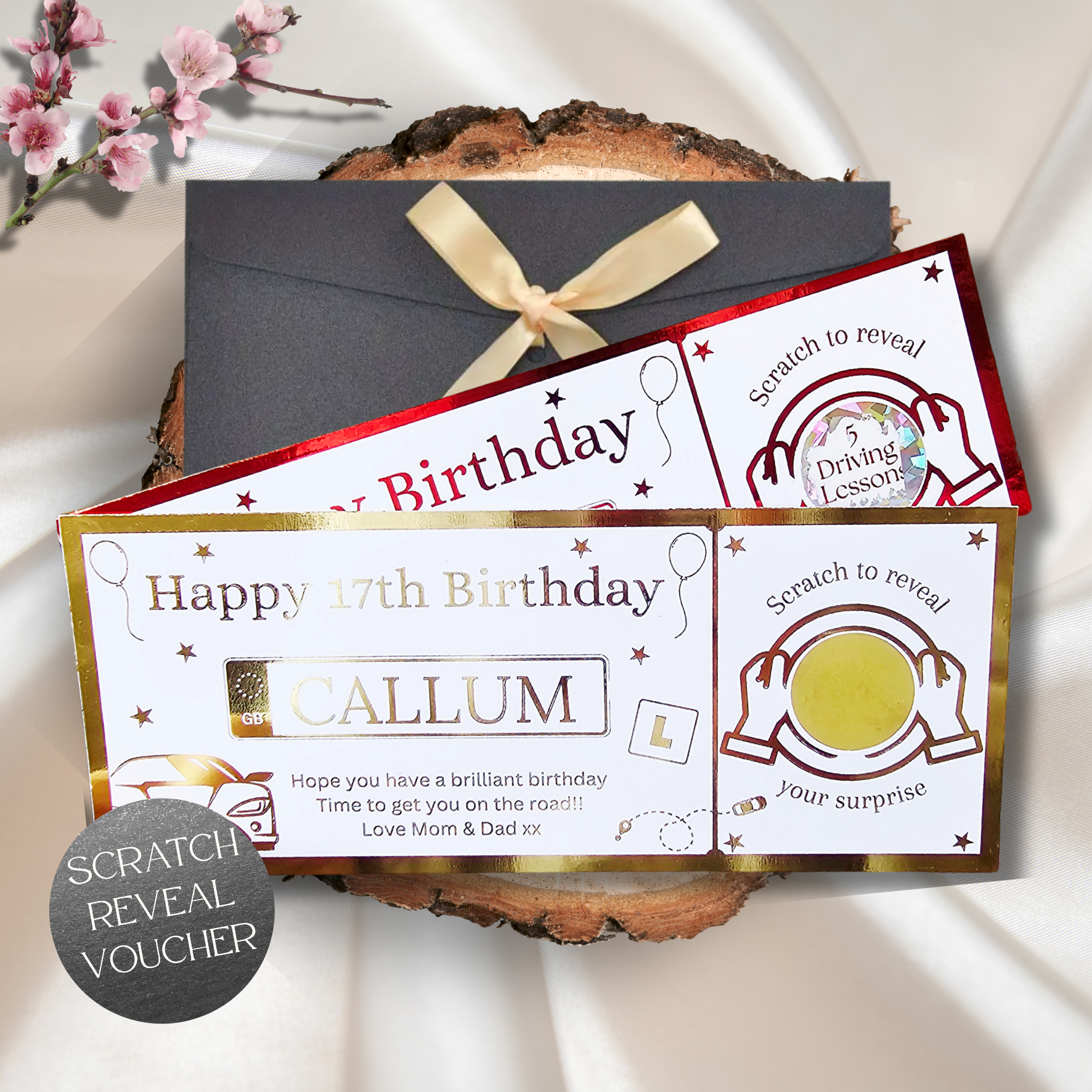 The scratch off reveal panel will add an extra element of surprise when it reveals how many driving lessons are being gifted. Perfect for birthdays or just as a treat to help someone get on the road.